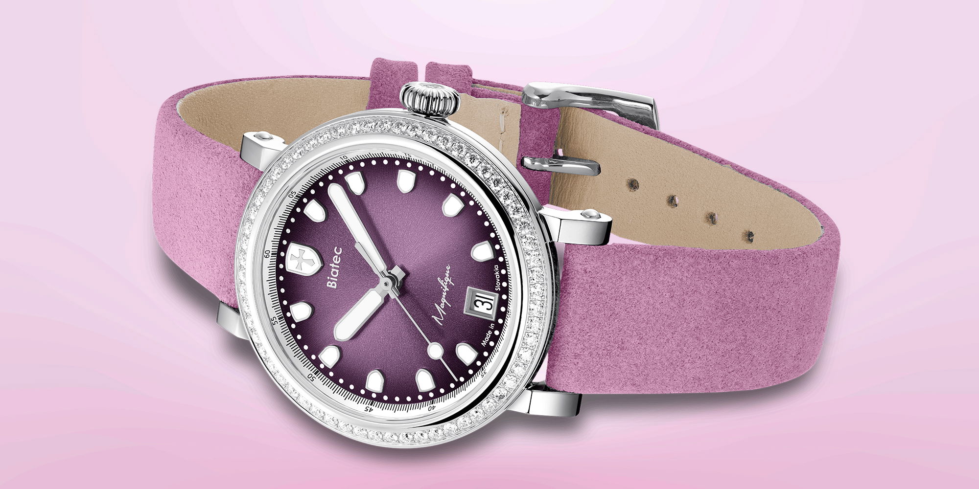 IMPORTANT NOTICE: Please note that this is a pre-order. The watches will be delivered before Christmas. After the pre-order period ends on November 30, 2025, the price of the watch will increase to 1,690 EUR. After the success and quick sell-out of the Magnifique First Edition, a new chapter begins. The Biatec Magnifique collection is reborn in fresh new dial colors, bringing even more personality and style. Thanks to different technical solutions, we managed to significantly reduce the price compared to the first edition, while preserving the elegance, craftsmanship, and attention to detail that define every Biatec timepiece. Each color has been carefully chosen to express a different facet of femininity – from subtle elegance to confident charm. Believe or not, our Magnifique case and dials are inspired by our robust diver models Leviathan. Ladies are welcome to visit our showroom in Zvolen (Slovakia) and try the watches in person.